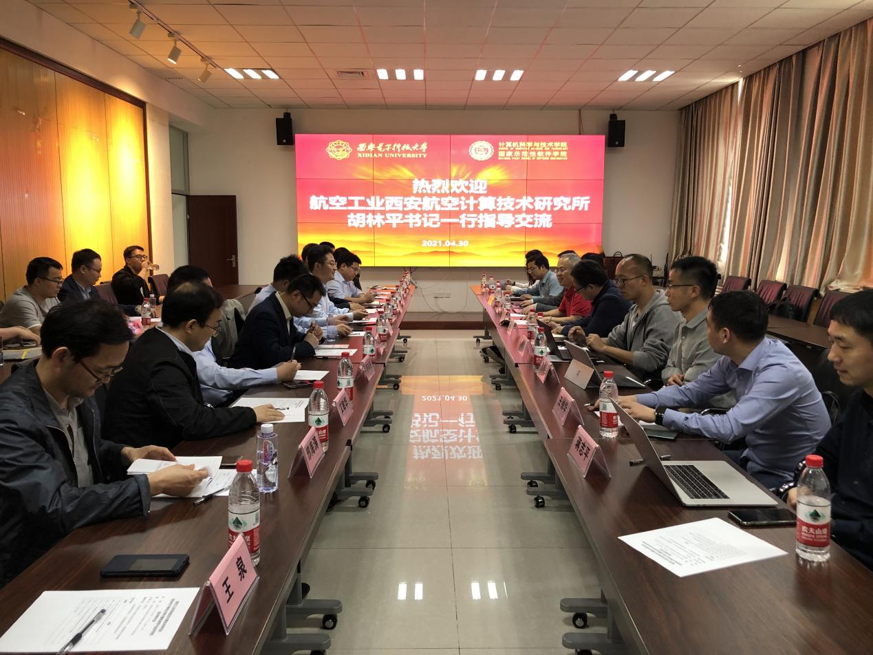 (通讯员 齐富)4月30日下午,航空工业西安航空计算技术研究所(简称中航工业631所)党委书记胡林平率副总工程师胡宁、三室主任李运喜及研究所技术骨干一行16人莅临我院研讨交流。我院党委书记李青山教授,软件工程学科秘书李瑞教授,先进遥感技术研究院肖国尧研究员、别博文教授、徐楷杰教授,教师代表张亮、蒋志平等参加研讨会,会议由李青山教授主持。