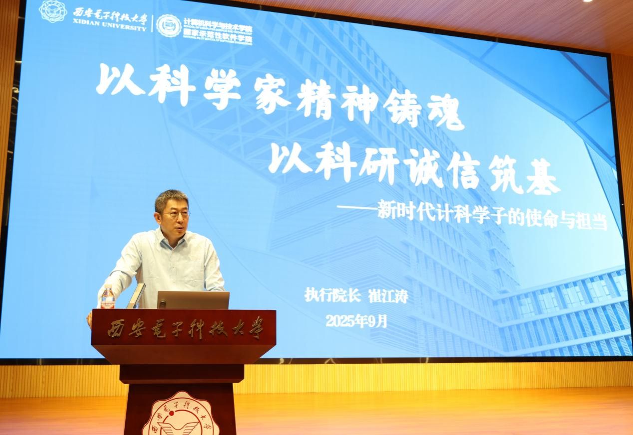 (通讯员 何敏之)为引导研究生新生树立正确学术价值观,筑牢科学道德防线,9月12日下午,betway必威西汉姆联官网在南校区网安大楼B-101报告厅开展“以科学家精神铸魂,以科研诚信筑基——新时代计科学子的使命与担当”主题讲座,学院执行院长崔江涛教授主讲,全体2025级研究生新生参加,会议由副院长杨力主持。
