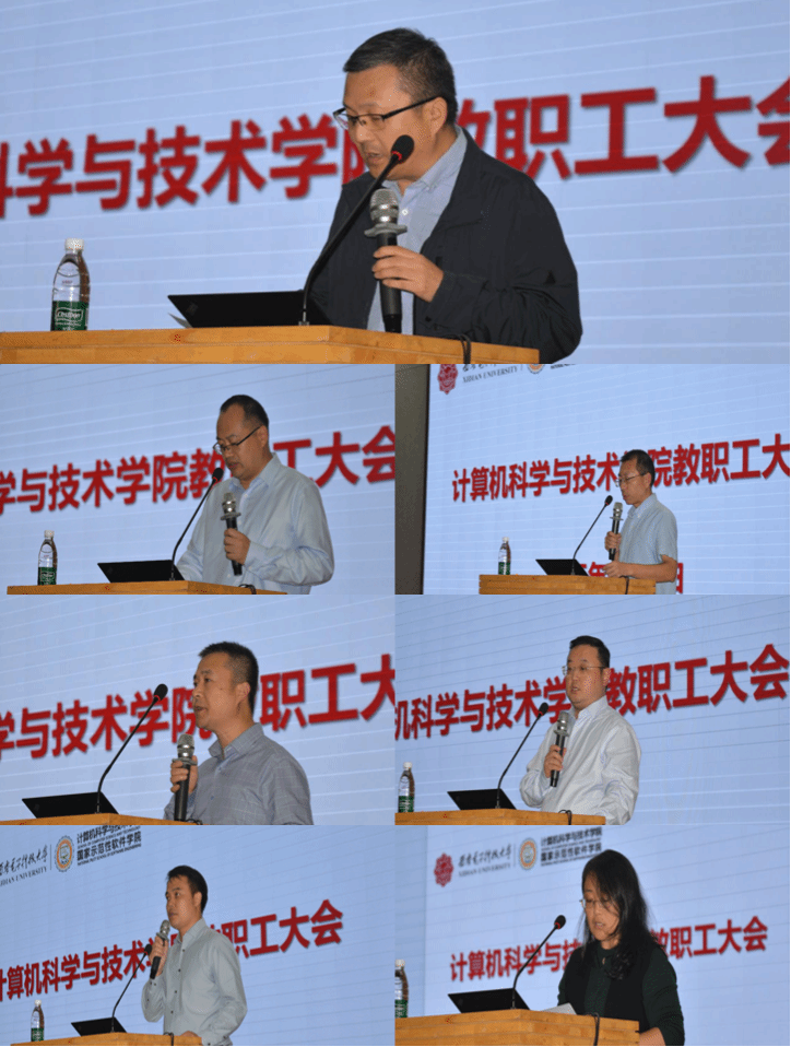 王卫东、赵韩强、万波、杨力、李瑞、黄成龙、王佩等7位分管领导就学院上半年党建扶贫、人事人才、本科教学、科研与研究生培养、国际化与特软学院建设、本科生教育管理、纪委与研究生教育管理等工作进展情况向全体教职工进行了汇报,并立足学院实际,结合岗位分工安排部署了下半年重点工作。