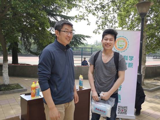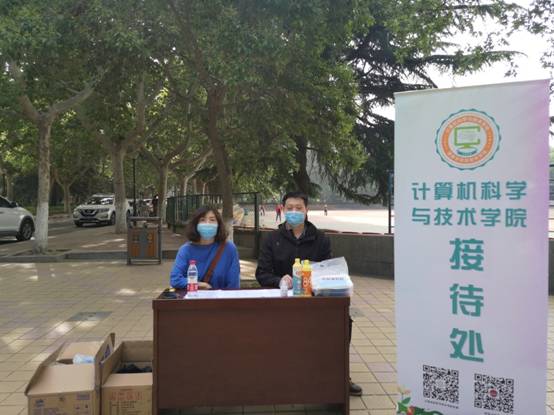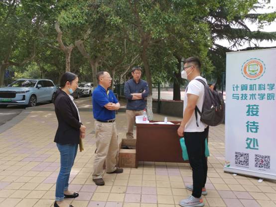 李青山、崔江涛在学院研究生返校接待点与学生交流
